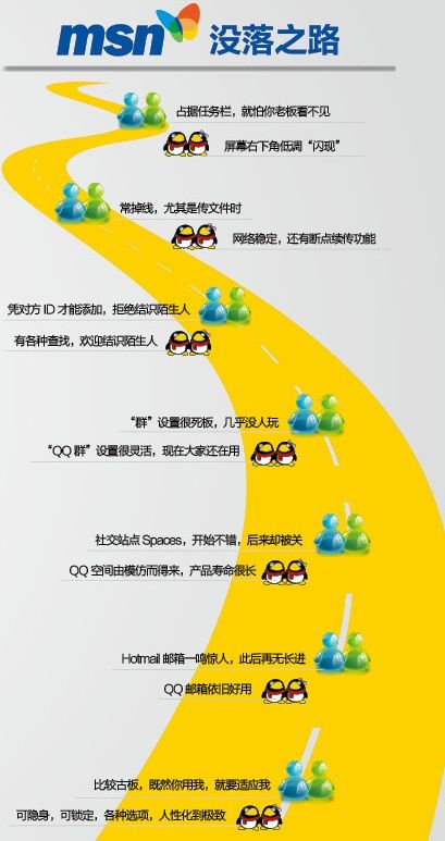 MSN靠的是戰略,而QQ靠的是戰術(shù)。進(jìn)入中國的時(shí)候,MSN就像QQ的顛覆者——那時(shí)候上網(wǎng)的人不多,但誰(shuí)都知道QQ。
