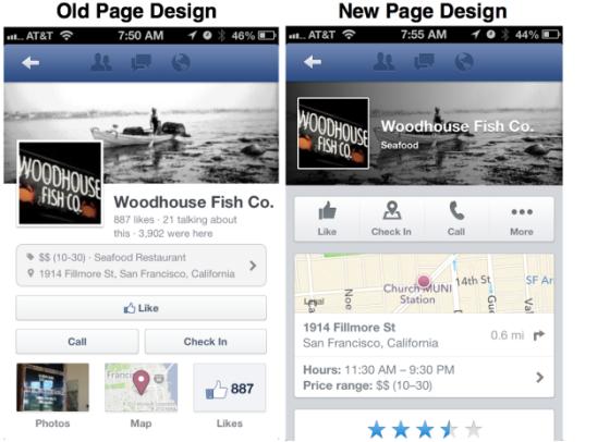 據美國科技博客TechCrunch報道,本周二,Facebook移動(dòng)端品牌頁(yè)面(Pages)在改版后以全新姿態(tài)亮相,新版增加了本地商家的詳細資料、評級等功能,同時(shí)“贊”(Like)、“簽到”(Check-In)等按鈕的位置更靠前。