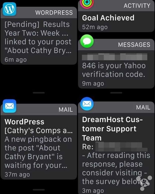 watchOS 會(huì )智能區分這兩種通知,據 Mac Kung Fu 博客表示,能夠讓用戶(hù)在 Apple Watch 上進(jìn)行操作的通知(例如回復),這些通知的圖標會(huì )呈圓形。反之,那些只能閱讀不能進(jìn)行交互的通知圖標會(huì )呈方形,這種情況下你就需要掏出 iPhone 進(jìn)行回復。