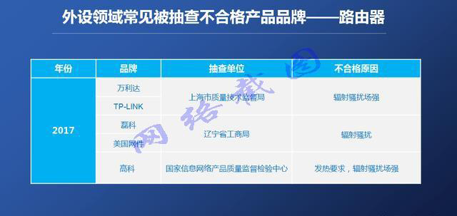 據最新一份報告《2018年度3·15數碼產(chǎn)品質(zhì)量關(guān)注度報告》,指出國內最受歡迎的路由器不合格產(chǎn)品如下。